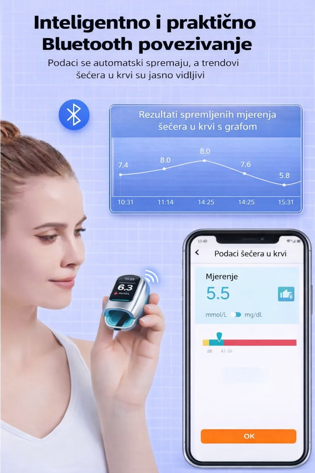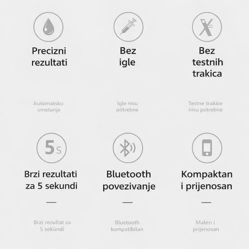 ✅ Praktično i sigurno – pratite razinu glukoze u krvi bilo kada, kod kuće ili u pokretu.